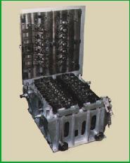 その後、機械部門の各種中子造型機の開発に合わせ、造型品に適合するマシン選定と装着金型を組み合わせ、一連の造型技術として提供するユニークな一貫態勢を確立、自動車・電機メーカーをはじめ量産鋳物工場向けに、各種金型の製造・販売を行ってきました。平成4年(1992年)にはCAD/CAMシステムを更新するとともに近代的な金型専門工場を新設しました。